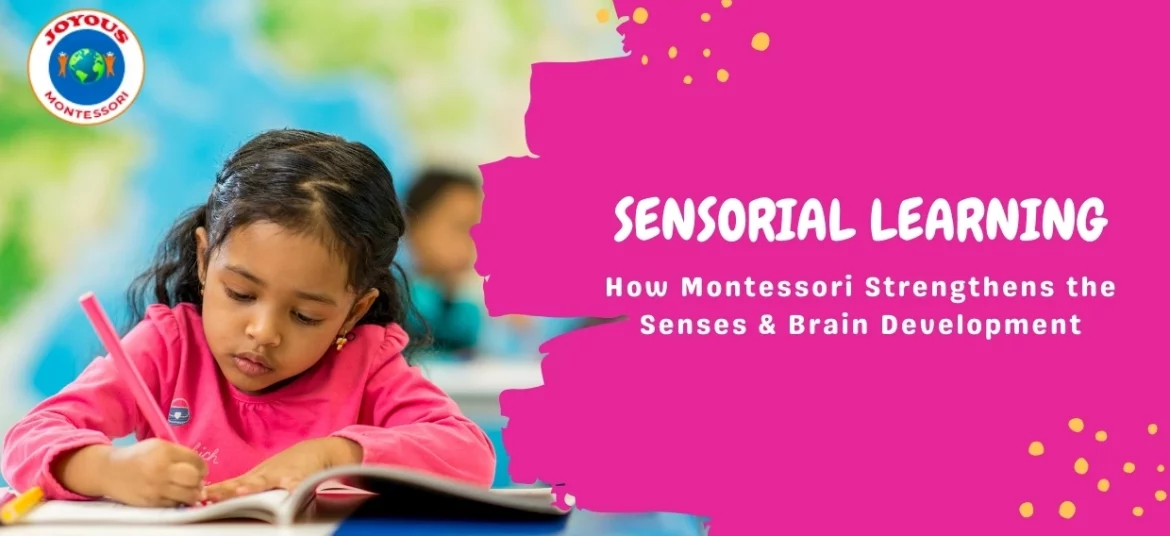 Sensorial Learning: How Montessori Strengthens the Senses & Brain Development Children learn about the world first through their senses, touching objects, observing colors, smelling familiar scents, and listening to new sounds. In the Montessori method, this natural curiosity becomes the foundation for learning. Sensorial education is a core component of every Montessori classroom because it helps children refine their senses, organize information, and build pathways in the brain that support future academic success. At Joyous Montessori, we believe that when children explore with their senses, they build stronger attention, memory, and problem-solving skills. Sensorial activities give young learners the tools they need to make sense of their environment while boosting confidence and independence along the way. What is Sensorial Learning in Montessori? Dr. Maria Montessori discovered that children develop and absorb information best when they are given opportunities to engage their senses. Sensorial materials are carefully designed to help children identify differences in: Size Shape Color Texture Sound Smell Weight Temperature Through hands-on materials and guided exploration, children refine their ability to observe, categorize, and understand what they experience. These cognitive skills are the building blocks for concepts in math, language, and science in later years. How Sensorial Learning Supports Brain Development Sensorial work is more than just seeing and touching; it boosts neural growth in measurable ways: ✔ Strengthens concentration : Children stay deeply focused on sorting, matching, and arranging materials, a skill that supports later classroom success. ✔ Enhances memory and reasoning : Comparing objects helps the brain recognize patterns and retain information. ✔ Builds problem-solving skills : Every sensorial material has a built-in challenge, encouraging children to think, evaluate, and try again. ✔ Supports language development : Children learn new vocabulary to describe their observations: long/short, rough/smooth, light/dark. ✔ Prepares for academic learning : A child mastering size discrimination with the Pink Tower is laying a foundation for math concepts like sequencing and measurement. Sensorial work changes the brain, empowering children to think more clearly and confidently. What Do Sensorial Activities Look Like in a Montessori Classroom? In a Montessori environment, sensorial learning experiences are thoughtfully designed to help children explore the world through structured and meaningful play. These activities vary by age and readiness, but each one encourages children to observe, compare, categorize, and understand their surroundings with greater clarity. Here are a few common ways sensorial learning comes alive in our classrooms: Sorting and Matching Activities Children group items by size, shape, color, or texture, strengthening visual and tactile discrimination. Sound and Listening Exercises Activities may include identifying environmental sounds or matching similar tones to improve auditory focus. Texture and Touch Exploration From smooth to rough, soft to firm, children develop strong sensory awareness and descriptive language. Temperature & Weight Comparison Safe, guided interactions help children recognize differences and build logical reasoning. Smell and Taste Experiences Children carefully explore scents and flavors to learn about real-world objects and cultural diversity. Movement and Balance Work Walking on a line, coordination games, and posture activities refine motor control and body awareness. These activities are presented one step at a time so children can follow their curiosity while developing critical thinking skills. The focus is not on perfection but on exploration, building confidence through discovery. Sensorial Learning Encourages Independence One of the most beautiful aspects of Montessori sensorial work is the control of error. Materials are designed so that if a mistake is made, the child can see it clearly, without a teacher correcting them. This encourages: ✨ Self-correction✨ Perseverance✨ Confidence✨ Decision-making When children feel trusted and capable, learning becomes joyful. How Parents Can Support Sensorial Learning at Home You don’t need specialized tools to nurture your child’s senses. Simple home activities can strengthen sensorial development: Sort socks by color and texture Compare food flavors, sweet vs. salty Identify sounds around the house Play with clay, sand, and water Match objects by size or shape Explore nature through a “sensory walk” Little discoveries at home reinforce classroom learning and strengthen curiosity. Why Sensorial Learning Matters for the Future Sensorial activities may seem like playful exploration, and they are! But beneath the fun is powerful learning that prepares children for: Mathematics → sequencing, spatial understanding Reading & writing → visual and tactile discrimination Science → observation and classification Art & music → creativity, pattern recognition When children refine their senses, they gain the tools they need to understand more complex concepts later. Sensorial learning fuels creativity while grounding knowledge in real-world experience. Experience the Power of Montessori Learning At Joyous Montessori, we create a nurturing environment where children are encouraged to explore, discover, and grow at their own pace. Sensorial materials play a vital role in shaping active thinkers, confident learners, and joyful individuals ready for lifelong success. We invite you to visit our campus and see how sensorial learning comes alive every day! Schedule a tour and watch your child’s senses and confidence expand through Montessori!